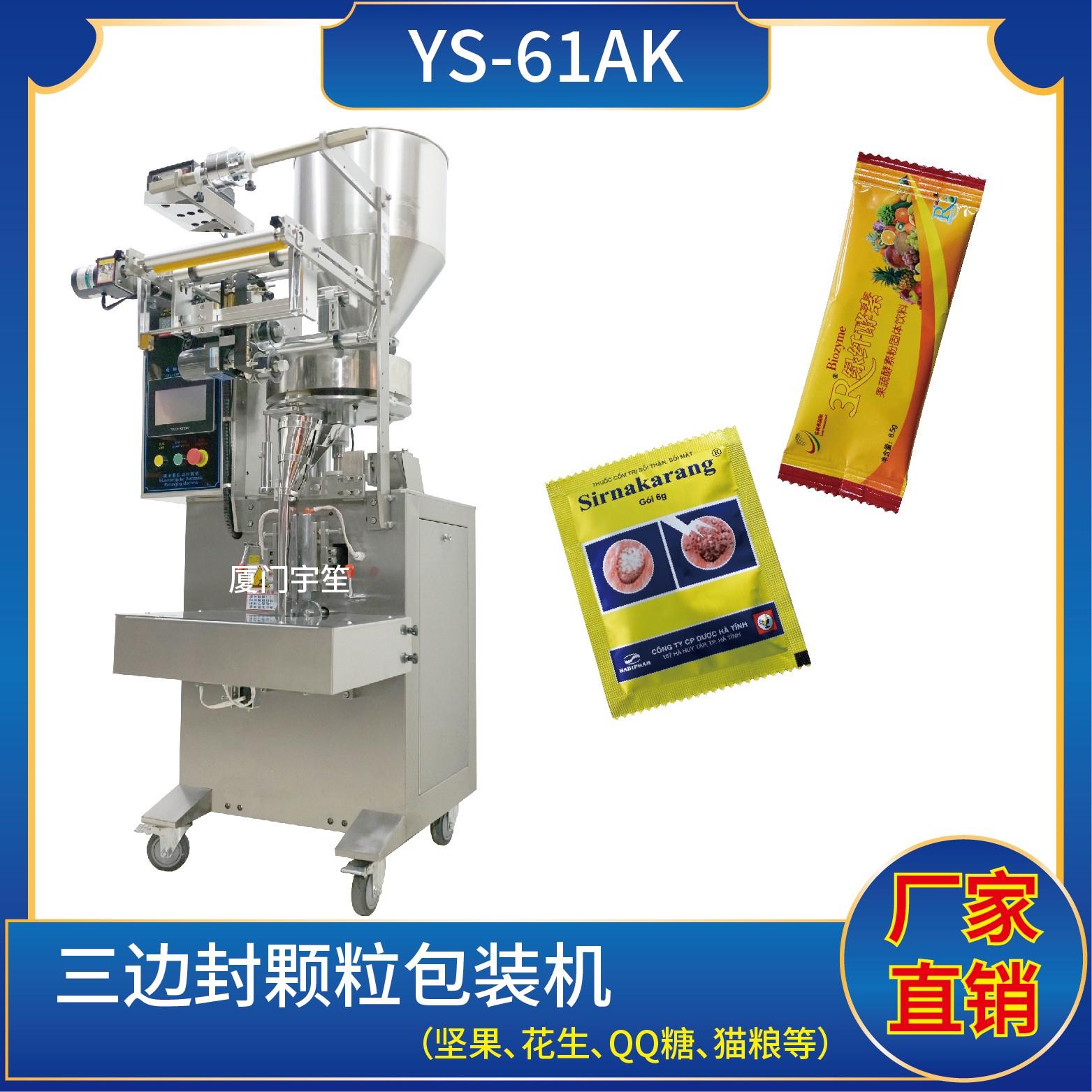 YP-61AK 三邊封顆粒包裝機(jī)特點(diǎn)1、適用于食品、醫(yī)藥、化工、化妝品行業(yè)中顆粒物品的計(jì)量包裝。2、可自動(dòng)完成制袋、計(jì)量、下料、封合、分切、計(jì)數(shù)、且可根據(jù)客戶要求配置打印批號(hào)等功能。3、觸摸屏操作,PLC 控制,驅(qū)動(dòng)步進(jìn)電機(jī)控制袋長(zhǎng),性能穩(wěn)定、調(diào)整方便、檢測(cè)準(zhǔn)確。智能式溫控儀,PID調(diào)節(jié),保證將溫度的誤差范圍控制在…